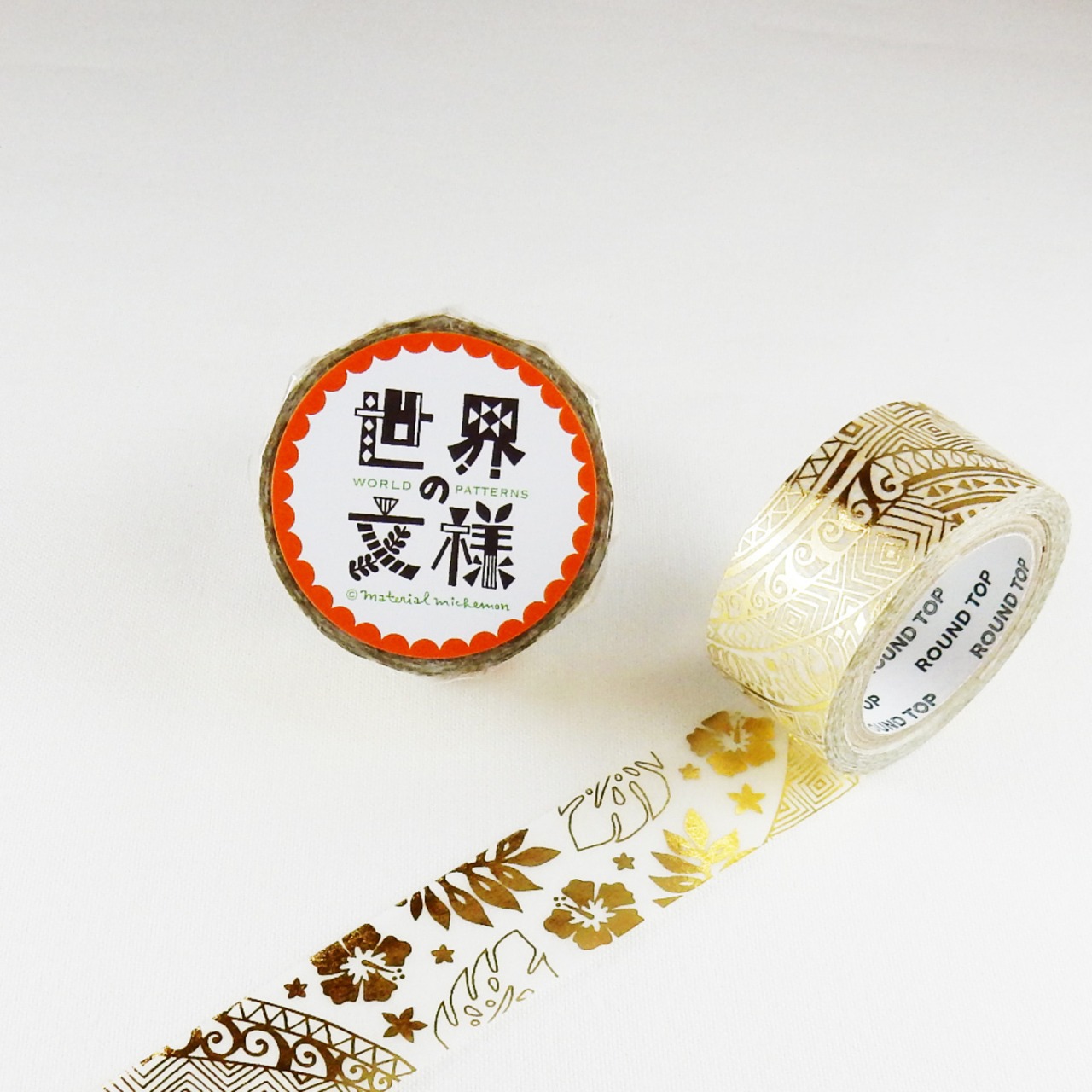イラストレーター・デザイナーのmaterial michemon タナカミチエが世界の文様をテーマにデザインした箔押しマスキングテープシリーズです。民族衣装や伝統的なモチーフ、代々伝わる幾何学的な模様などをアレンジしてデザイン。楽しみながらいろいろな用途にお使いいただけるシリーズです。