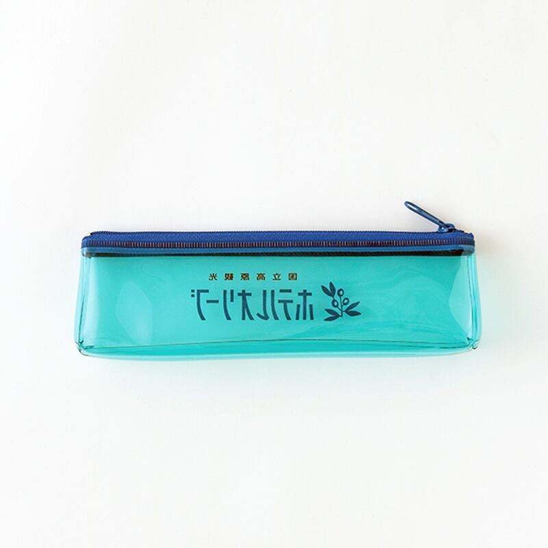 中身が見えやすい、クリアPVCを使用したペンポーチ。歯ブラシポーチとして使用しても便利です。