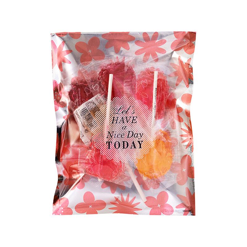 ミドリ 片面透明袋 メタリック M 花柄 ピンク H190×W130mm 18809006 8枚入 デザインフィル