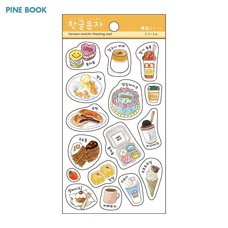 マスキングシール ハングル 韓国 スイーツ 144×85mm 同柄 2シート入 t317013 パインブック PINEBOOK